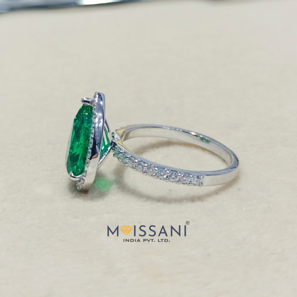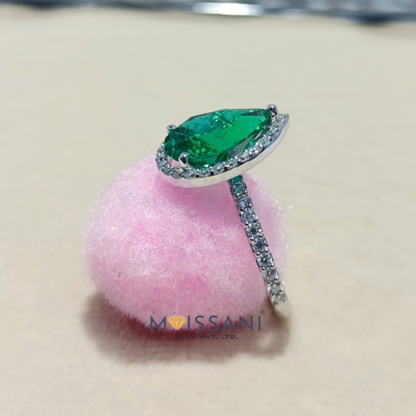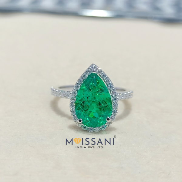 Green Lab-grown Emerald Pear Shape With Moissanite Ring – LR00367