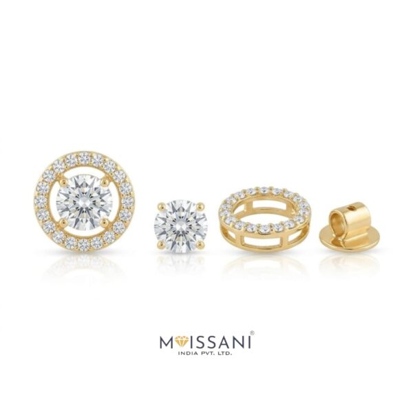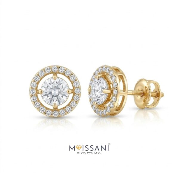 0.50ct+0.50ct Lab-Grown diamond Solitaire 0.37ct Side Stone Round With Halo Shape Earring with Gross weight 2.995gms in 14kt Gold, (EF color, VS Clarity) IGCCERTIFIED Everyday Wear / Wedding Gift/ Made to Order / Best Forever Gift / Party Wear / Daily Wear Earrings/ Fashionable Earring