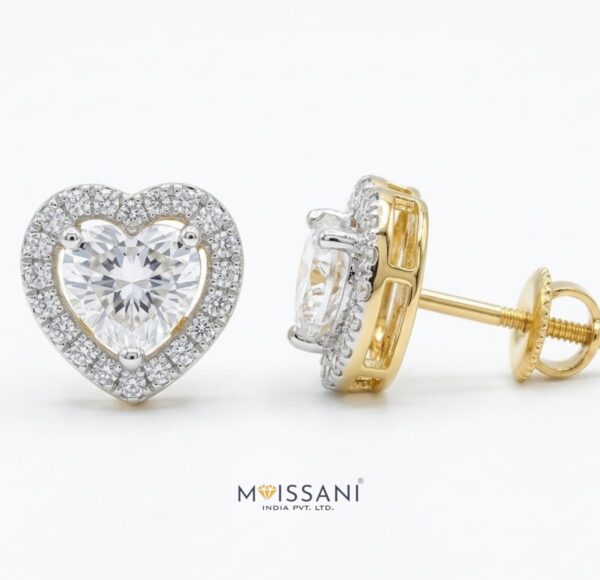 0.50ct+0.50ct Lab-Grown diamond Solitaire 0.40CT Side Stone Heart Shape Earring with Gross weight 1.881 gms in 14kt Gold, ( EF Color, VS Clarity ) IGCCERTIFIED Everyday Wear / Wedding Gift/ Made to Order / Best Forever Gift / Party Wear / Daily Wear Earrings/ Fashionable Earring