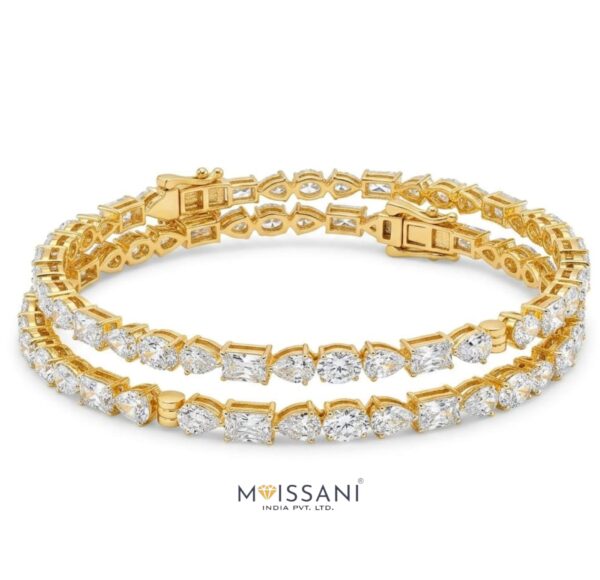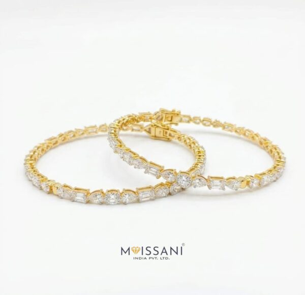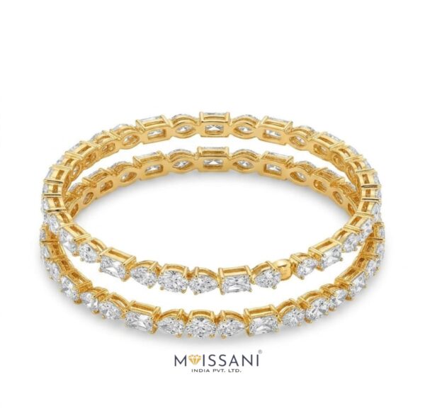 Home / By Product / Lab-Bangle / Lab Grown Diamond / Lab Grown Diamond Mix Shape Bangles – LBG0007 Sale! Lab Grown Diamond Mix Shape Bangles – LBG0007 ₹985,769.00 Original price was: ₹985,769.00.₹982,769.00Current price is: ₹982,769.00. SKU: LBG0007 14K 18K Product price: ₹982,769.00 Total options: Order total: Quantity Add to cart Buy Now Estimated Delivery Time: Domestic: 3-4 Days (if ready in stock). International: 7-8 Days (if ready in stock). MOISSANI INDIA PVT. LTD. Contact us for Pricing Description 17.64CT Lab-Grown Diamond 23Pointer each mix Shape Wedding Bangles in yellow gold ,GW 22.654gms (EF Color, VS Clarity) Certified Lab Grown Diamond Bangle for all-day Wear/mix -Cut Wedding Gift Bangle / Party Wear