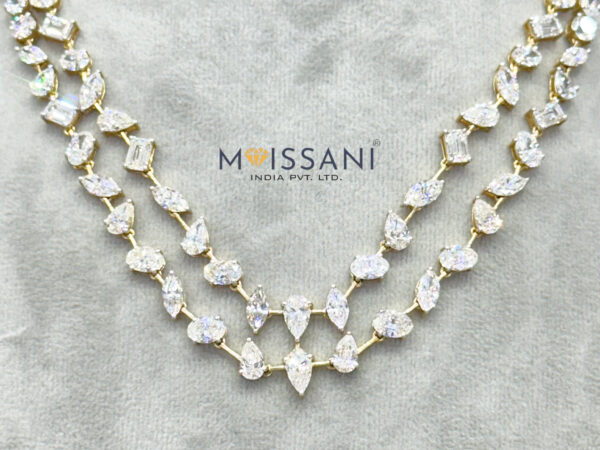 Home / By Product / Lab-Bangle / Lab Grown Diamond / Lab Grown Diamond Mix Shape Necklace-LNK0001 Lab Grown Diamond Mix Shape Necklace-LNK0001 ₹557,111.00 SKU: LNK004-1 14K 18K Product price: ₹557,111.00 Total options: Order total: Quantity Add to cart Buy Now Estimated Delivery Time: Domestic: 3-4 Days (if ready in stock). International: 7-8 Days (if ready in stock). MOISSANI INDIA PVT. LTD. Contact us for Pricing Description 19.08ct Lab Grown Diamond Mix Shape Necklace with 20.301gms Yellow Gold( EF Color, VS Clarity) IGC Certified Lab-grown Diamond Necklace for Wedding Wear / Mix Cut Reception Party Wear Necklace/ Elegant Necklace..