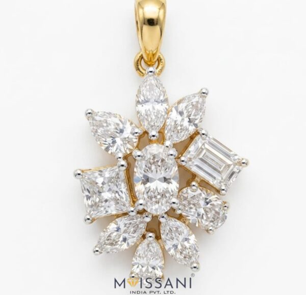 1.83CT Lab-Grown Diamond Mix Shape Pendant without chain with Gross Weight of 2.385grams Yellow Gold, (EF Color, VS Clarity), IGI Certified Lab-Grown Diamond Pendant for Everyday Wear / Mix Cut Wedding Gift Pendant, Anniversary Gift, Beautiful Pendant for Special Occasion / Forever Gift.