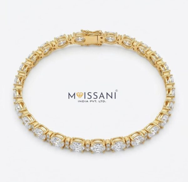 Home / By Product / Lab-Bangle / Lab Grown Diamond / Lab-Bracelets / Lab Grown Diamond Oval Shape Bracelet-LBL0021 Sale! Lab Grown Diamond Oval Shape Bracelet-LBL0021 ₹298,063.00 Original price was: ₹298,063.00.₹295,063.00Current price is: ₹295,063.00. SKU: LBL0021 14K 18K Product price: ₹295,063.00 Total options: Order total: Quantity Add to cart Buy Now Estimated Delivery Time: Domestic: 3-4 Days (if ready in stock). International: 7-8 Days (if ready in stock). MOISSANI INDIA PVT. LTD. Contact us for Pricing Description 14CT Round Shape 0.72 Pointer Lab Grown Diamond Bracelet with Gross weight 14.36 gms in Yellow Gold (EF Color, VS Clarity) IGC Certified Bracelet for Party and Wedding Wear / Anniversary Gift Bracelet / Wedding Gift / Best Gift for Her