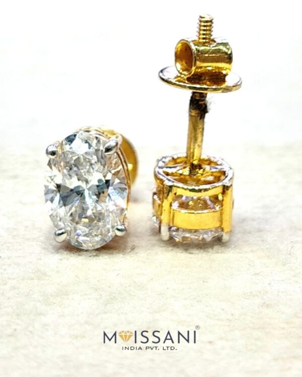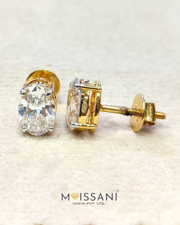 1.07CT+1.07ctLab-Grown diamond Oval Solitaire shape earring Gross weight 1.987gms in 14kt Yellow Gold, (E color, VS 1 Clarity) IGI CERTIFIED Everyday Wear / Wedding Gift/ Made to Order / Best Forever Gift / Party Wear / Daily Wear Earrings/ Fashionable Earring