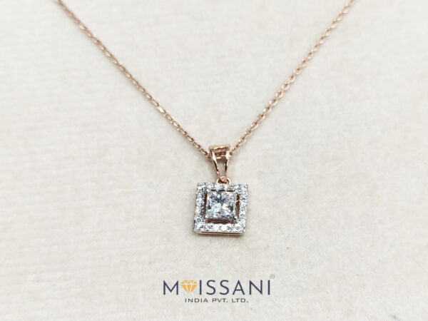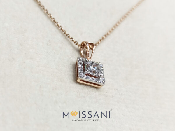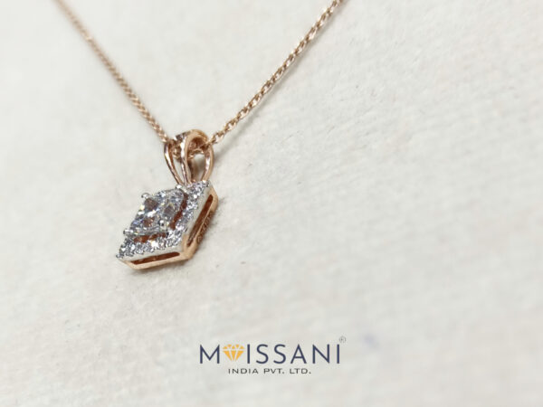 0.73CT Lab-Grown Diamond 0.15ct Side Stone Princess Shape Pendant without chain with Gross Weight 1.293grams Rose Gold, (EF Color, VS Clarity,) IGI Certified Lab-Grown Diamond Pendant for Everyday Wear / Cushion Cut Wedding Gift Pendant, Anniversary Gift, Beautiful Pendant For Special Occasion / Forever Gift.