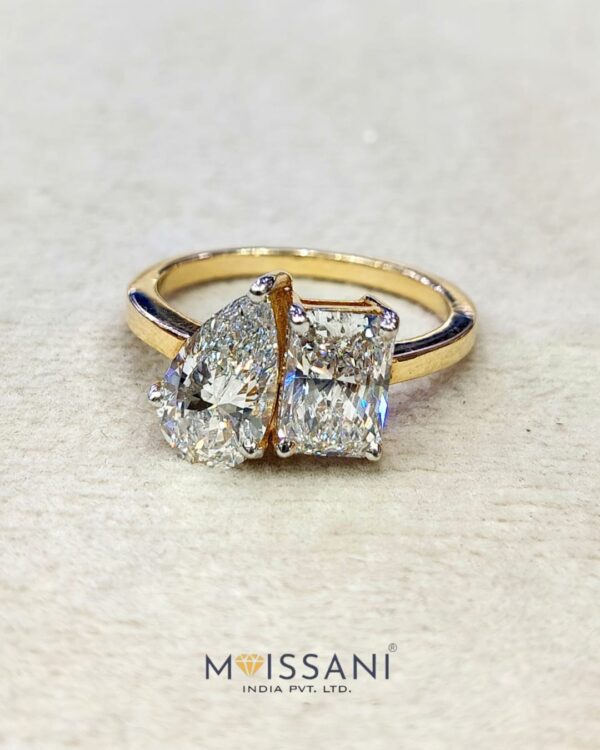 1.35ct Lab Grown Diamond Radiant + 1.33ct Pear Solitaire Shape Ring (F Color, VS 1 Clarity)Gross Weight with 3.254gm in White Yellow, IGI Certified Lab Grown Diamond for Everyday Wear / Radiant + Pear Cut Wedding Gift Ring / Wedding Ring Anniversary Ring / Made to Order / Best Forever Gift / Wedding Gift Ring…