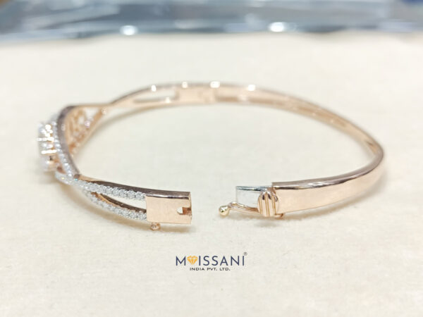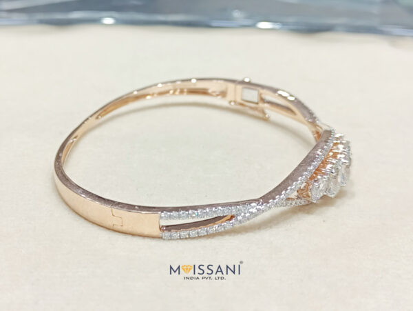 2.14CT solitaire, 0.92CT Side stone Lab Grown Diamond Round & Oval Shape Stiff-Bracelet with Gross Weight 12.240gms in Gold, EF Color,VSClarity, Certified Lab Grown Bracelet for Party and Wedding Wear / Anniversary Gift Bracelet / Wedding Gift / Best Gift for Her
