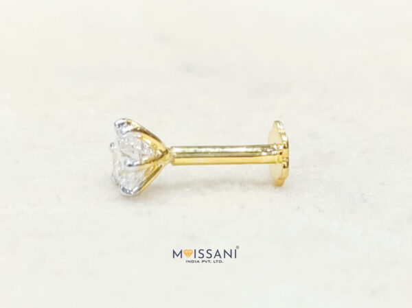 0.10 CT Lab Grown Diamond Round Cut Antique Nose Pin with Gross weight 0.250Gms Yellow Gold (EF Color, VS Clarity) SGL Certified Lab Grown Diamond Nose Pin for Everyday Wear / Round Cut Wedding Gift Nose Pin / Party Wear / Anniversary Gift / Beautiful Nose Pin For Special Occasion / Bridal Wear