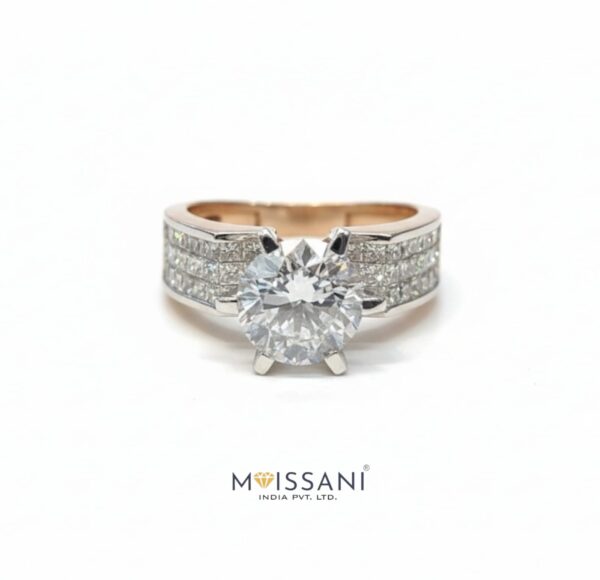 1.76ct Lab Grown Diamond Round Solitaire 1.04ct Side Stone Princess Shape Ring (E Color, VS 1 Clarity)Gross Weight with 4.273gm in 14K Rose Gold, IGI Certified Lab Grown Diamond for Everyday Wear / Round Cut Wedding Gift Ring / Wedding Ring Anniversary Ring / Made to Order / Best Forever Gift / Wedding Gift Ring