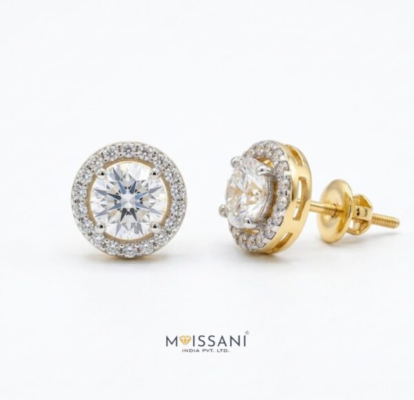 1.34 ct + 1.34 ct Lab-Grown diamond Solitare 0.75 CT Side Stone Round Shape Earring with Gross weight 3.770 gms in 14kt Gold, (G color, VS1 Clarity) IGICERTIFIED Everyday Wear / Wedding Gift/ Made to Order / Best Forever Gift / Party Wear / Daily Wear Earrings/ Fashionable Earring