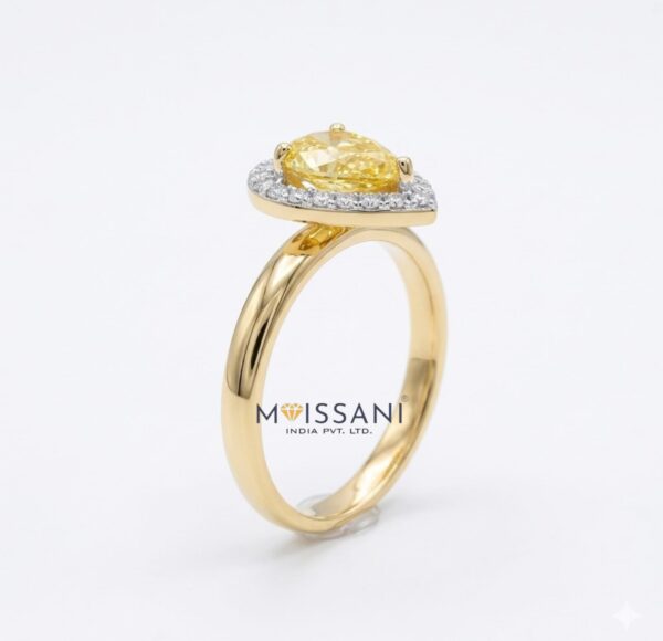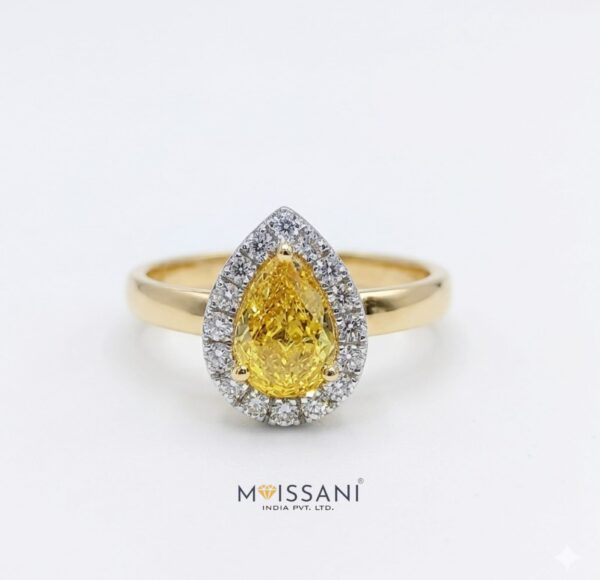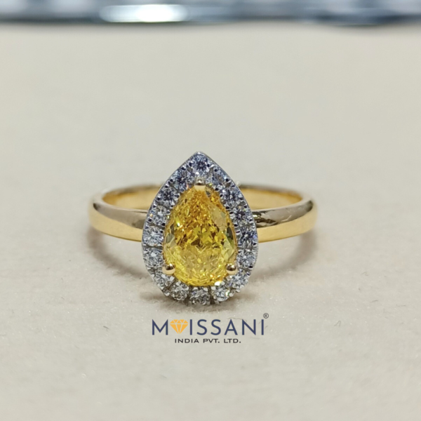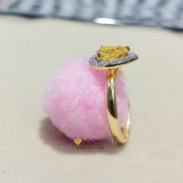0.86Ct Center Pear Shape Solitare 0.28CT Side stone Lab Grown Diamond (Yellow Color, VV S2 Clarity) Ring Gross Weight with 3.050 gms in Gold, IGI Certified Lab Grown Diamond for Everyday Wear / Round Cut Wedding Gift Ring / Wedding Ring Anniversary Ring / Made to Order / Best Forever Gift / Wedding Gift Ring