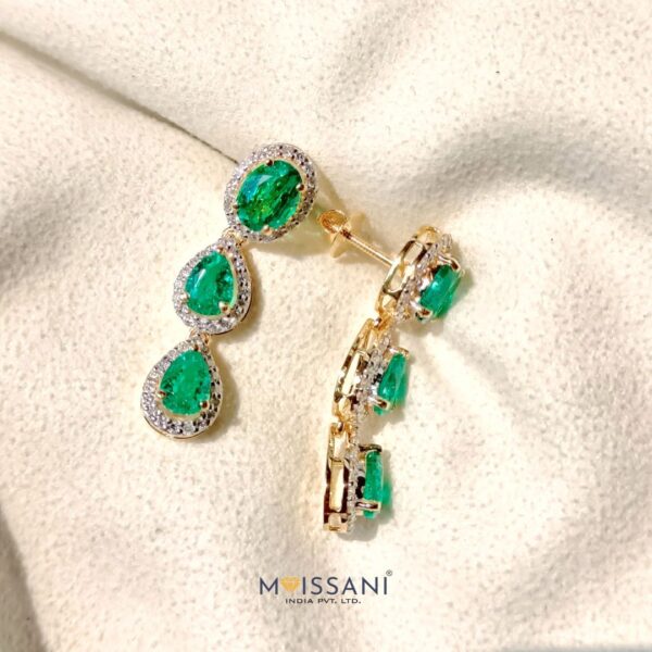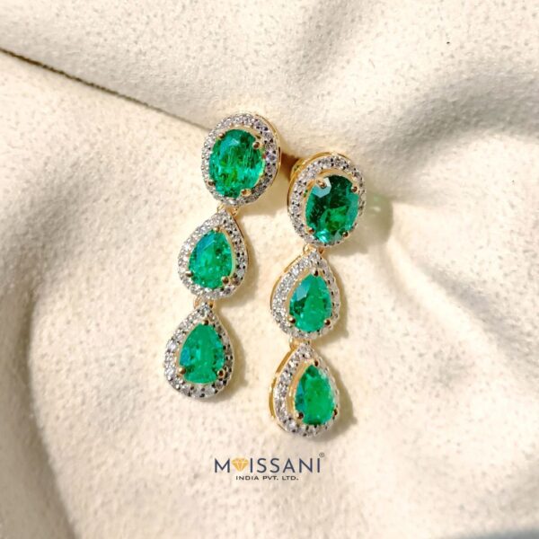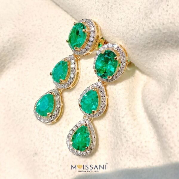 2.52ct+2.52ct Lab-Grown Emerald Solitare Side Stone 1.24CT Lab Grown Diamond Pear Shape Earring with Gross weight 6.432gms in 14kt Gold, “EF color, VS Clarity” IGC CERTIFED Everyday Wear / Wedding Gift/ Made to Order / Best Forever Gift / Party Wear / Daily Wear Earrings/ Fashionable Earring