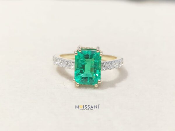 2.08Ct Lab Grown Emerald Side stone 0.60ct Solitaire Diamond Shape Ring (EF Color, VS Clarity)Gross Weight with 3.337gms in Gold, IGC Certified Lab Grown Diamond for Everyday Wear / Emerald Cut Wedding Gift Ring / Wedding Ring Anniversary Ring / Made to Order / Best Forever Gift / Wedding Gift RingÂ