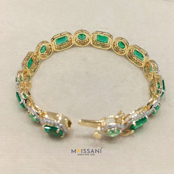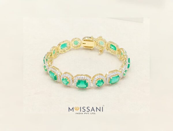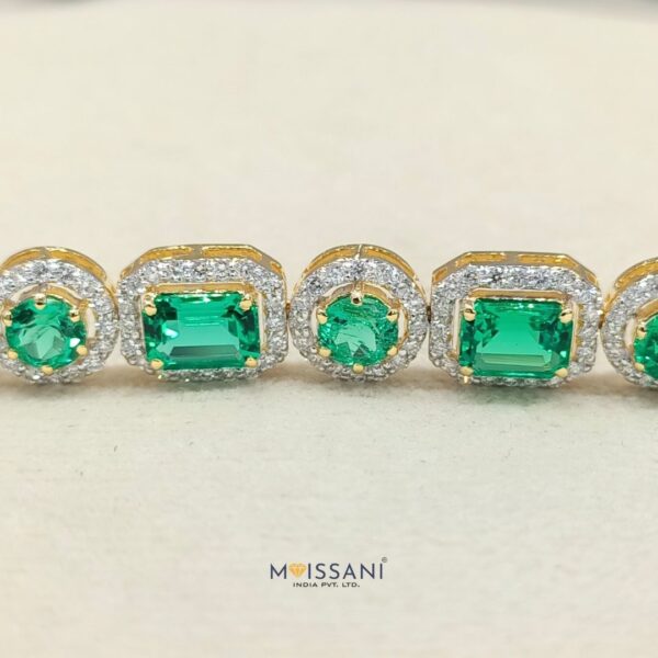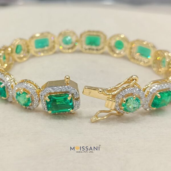 10.6CT Lab Grwon Emerald with 2.80ct Side Stone Lab Grown Diamond Round+ Emerald Shape with Gross weight 16.403gms in Yellow Gold (EF Color, VS Clarity) Certified Bracelet for Party and Wedding Wear / Anniversary Gift Bracelet / Wedding Gift / Best Gift for Her