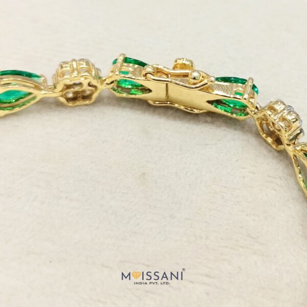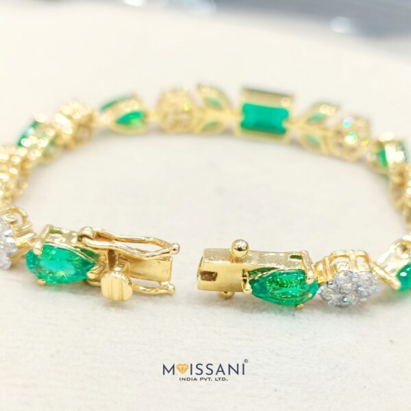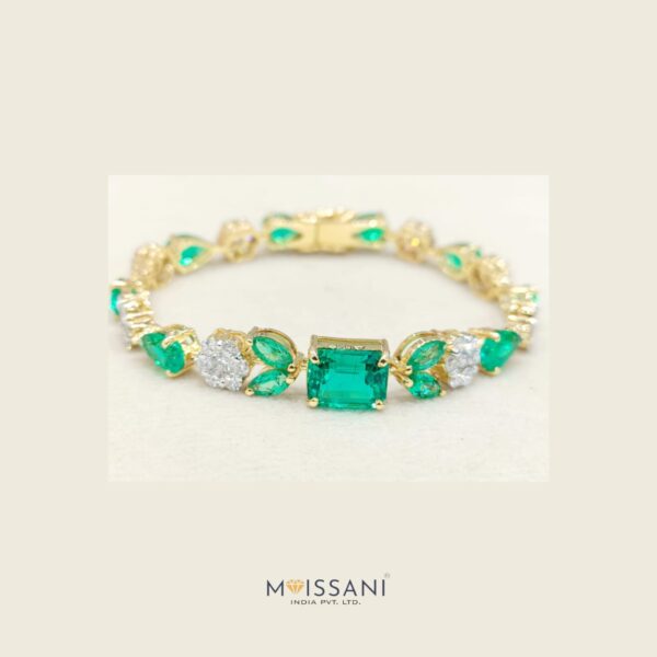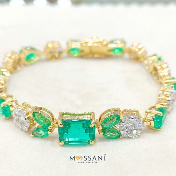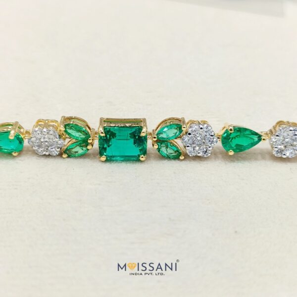 9.19CT Lab Grwon Emerald with 2.94ct Side Stone Lab Grown Diamond Mix Shape with Gross weight 13.300gms in Yellow Gold (EF Color, VS Clarity) Certified Bracelet for Party and Wedding Wear / Anniversary Gift Bracelet / Wedding Gift / Best Gift for Her