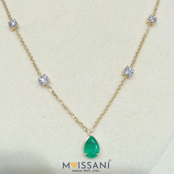Home / By Product / Necklace / Lab-Grown Emerald with Moissanite Necklace – NK023 Lab-Grown Emerald with Moissanite Necklace – NK023 ₹71,265.00 SKU: NK023 14K 18K Product price: ₹71,265.00 Total options: Order total: Quantity Add to cart Estimated Delivery Time: Domestic: 3-4 Days (if ready in stock). International: 7-8 Days (if ready in stock). MOISSANI INDIA PVT. LTD. Contact us for Pricing Description 1.40CT Lab-Grown Emerald 1.50ct with Moissanite Necklace with Gross weight 4.604gms Yellow Gold 16 Inches., D Color, VVS1 Clarity, Certified Moissanite Necklace for Wedding Wear / Round Cut Reception Party Wear Necklace/Tennis Necklace