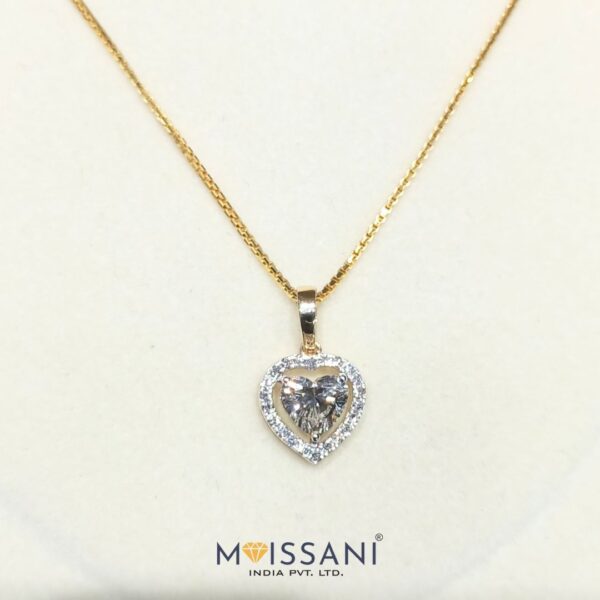 PENDANT:- 1.18ct Lab-Grown Diamond 0.23ct Side Stone Hreat Shape Pendant with Gross Weight 1.840grams Yellow Gold, (H Color, VS 1 Clarity,)