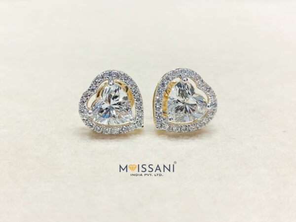 EARRING:- 1,00ct + 1.00ct Lab-Grown Diamond 0.37ct Side Stone Hreat Shape Earring with Gross Weight 3.440grams Yellow Gold, (G Color, VS 1 Clarity,)
