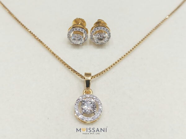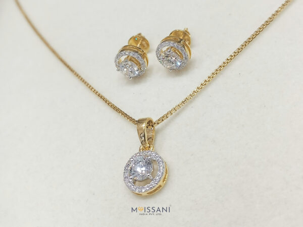 Lab-Grown Pendant Combo Set Round Cut With Halo-LPT0020 + LE0098