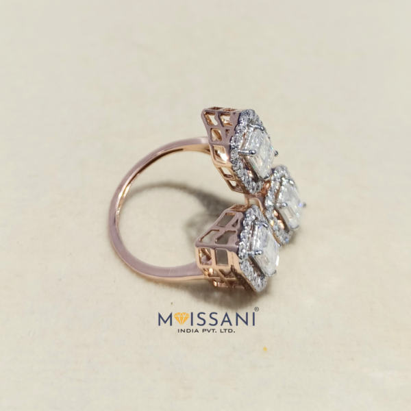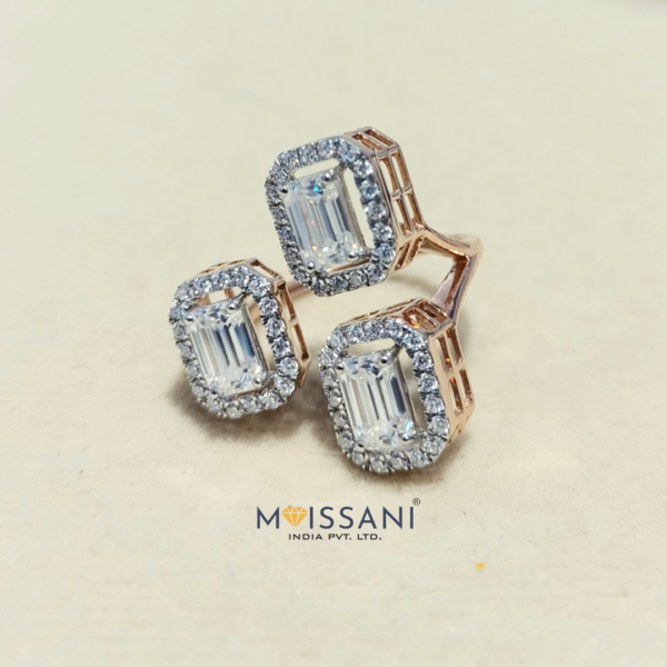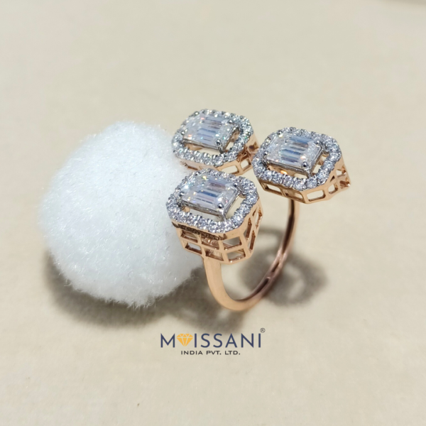Moissanite Emerald Shape Three Stone Ring – LR00352