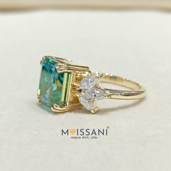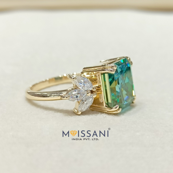0.70 CT Moissanite with 6.0 CT Green Radiant Cut Ring, with gross weight 6.730 grams Yellow Gold, D Color, VVS1 Clarity, Certified Ring / Bridal Ring / Beautiful Ring For Special Occasion / Festive Gift / Promising Ring / Best Solitaire Ring / Slick Solitaire Ring / Forever for Her / Daily Wear / Radiant Cut Ring for Women / Made to Order Ring / Anniversary Ring / Promise Ring Gift for Her / Antique Double Cut Promise Ring / Engagement Rings / Green Moissanite Ring / Anniversary Gift / Wedding Ring / Made to Her / Unique Design Dual Color Ring