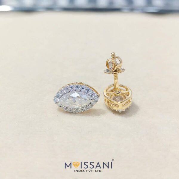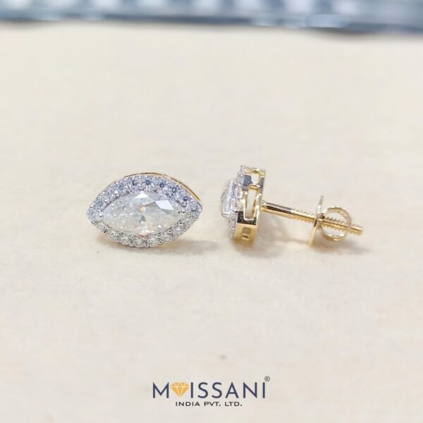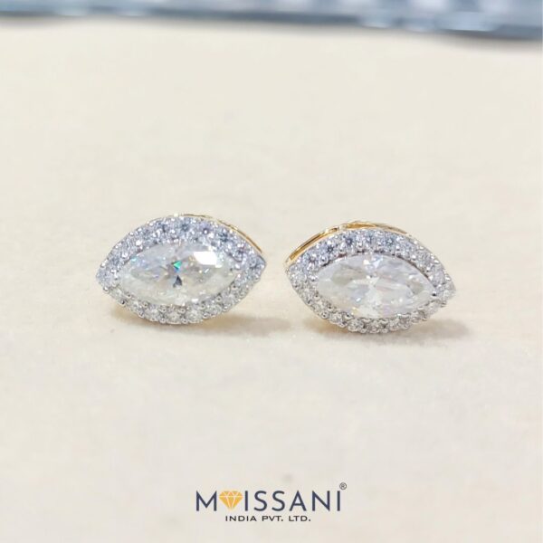 0.98ct +0.98ct Moissanite Marquis Shape halo Earring with Gross Weight 2.780 grams White Gold, D Color, VVS1 Clarity, Certified Anniversary Earring, Centre Nine Claw Prong, Earring Design / Anniversary Gifts / Gold Earrings / Moissanite White Gold
