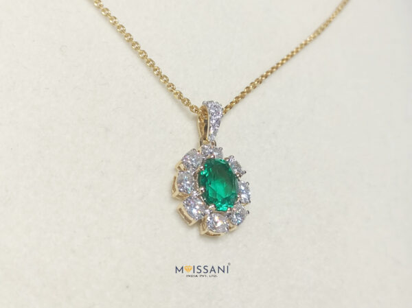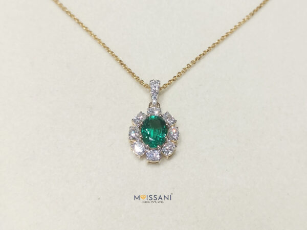 Moissanite Oval Cut Green Lab Grown Emerald Pendant – PT0080