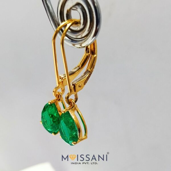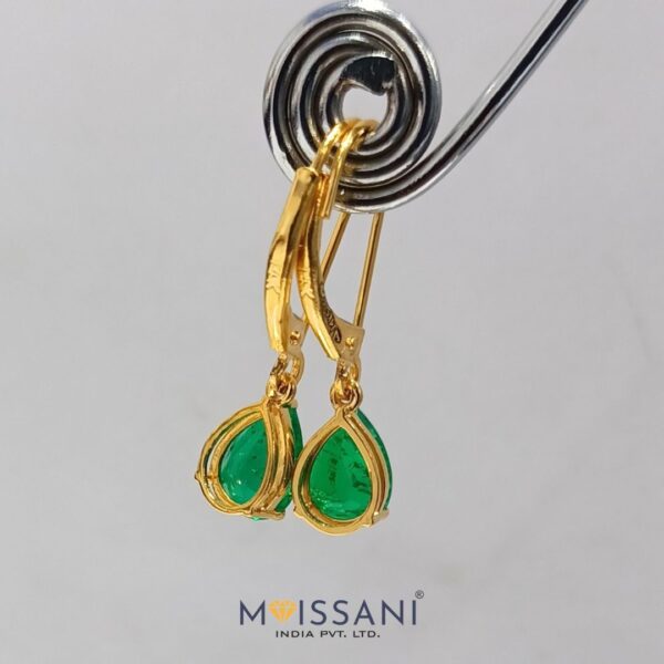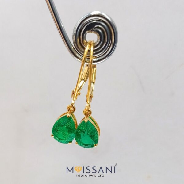 1.05ct + 1.05ct Lab Grown Emerald Pear Columbian emerald Hanging Earring with Gross Weight 1.612 grams Yellow Gold, Certified Earring for Everyday Wear / Wedding Gift Earring / Party Wear / Anniversary Gift / Beautiful Earring For Special Occasion / Bridal Wear / Fancy Earring
