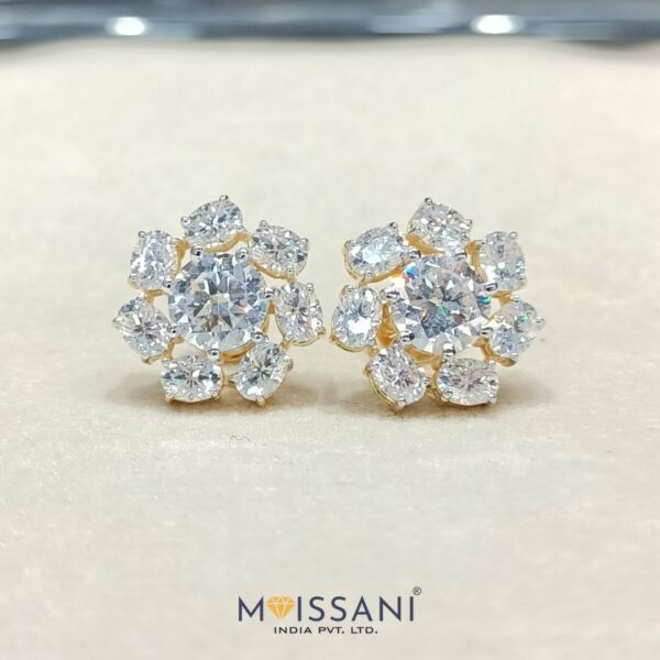 2.12ct +2.12ct Moissanite Round & Oval Shape Earring with Gross weight 5.220grams White Gold, D Color, VVS1 Clarity, Certified Anniversary Earring, Centre Six Claw Prong, Earring Design / Anniversary Gifts / Gold Earrings / Moissanite White Gold