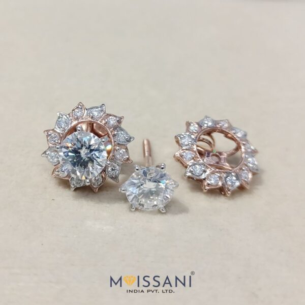 1.45ct + 1.45ct Round Shape Moissanite Detachable Earring with Gross Weight 4.914 grams Yellow Gold, D Color, VVS1 Clarity, Certified Moissanite Earring for Everyday Wear / Wedding Gift Earring / Party Wear / Anniversary Gift / Beautiful Earring For Special Occasion / Fashionable earrings.