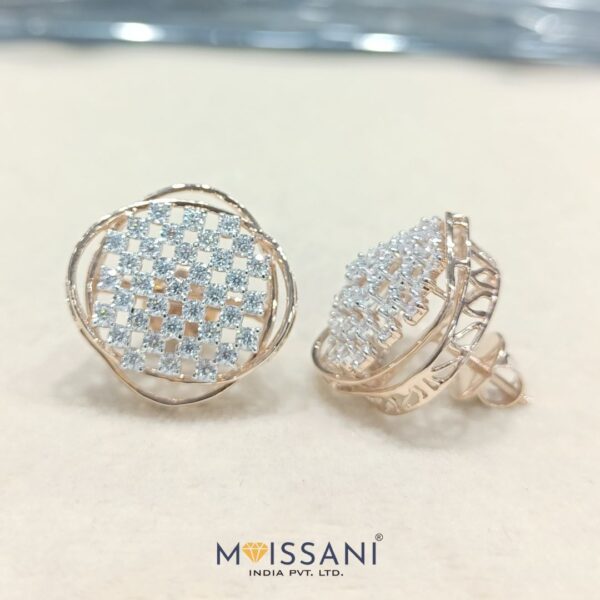 0.925ct +0.925ctMoissanite Round Shape Fancy Earring with 6.220 grams White Gold, D Color, VVS1 Clarity, Certified Anniversary Earring, Centre Nine Claw Prong, Earring Design / Anniversary Gifts / Gold Earrings / Moissanite White Gold