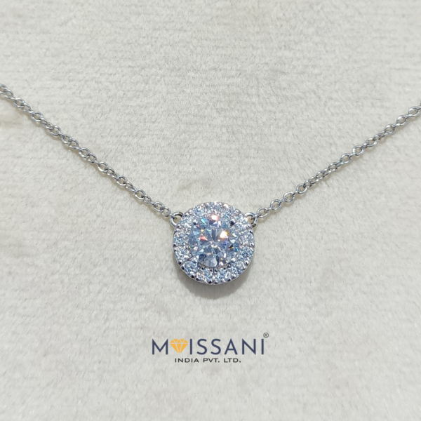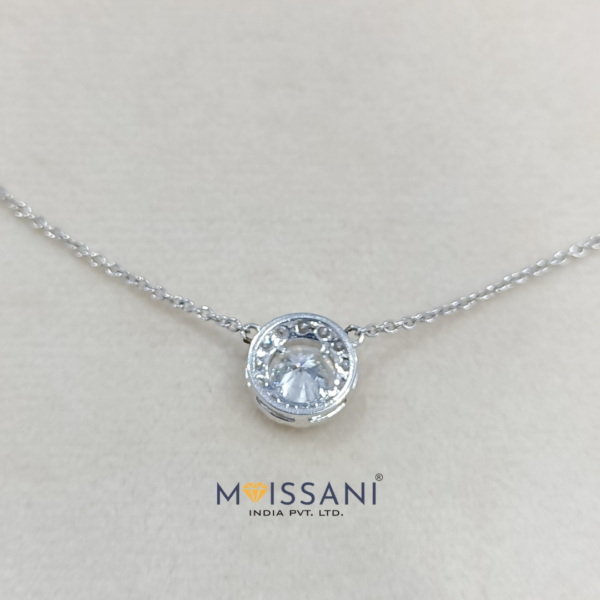 Home / By Product / Pendants / Moissanite Round Shape Pendant – PT0031 Moissanite Round Shape Pendant – PT0031 ₹57,428.00 SKU: PT0031 Brand: 241 14K 18K Product price: ₹57,428.00 Total options: Order total: Quantity Add to cart Estimated Delivery Time: Domestic: 3-4 Days (if ready in stock). International: 7-8 Days (if ready in stock). MOISSANI INDIA PVT. LTD. Contact us for Pricing Description 1.20 CT Round Shape Pendant With Chain with 3.135gms Gold, D Color, VVS1 Clarity, Certified Moissanite Pendant for Everyday Wear / Round Cut Wedding Gift Pendant, Anniversary Gift, Beautiful Pendant For Special Occasion / Forever Gift.