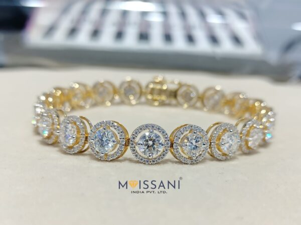 “Moissanite Round Shape Single Halo Bracelet Moissanite best option to gift or daily wear .Am Agree