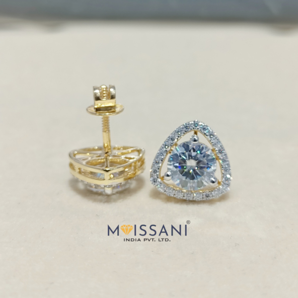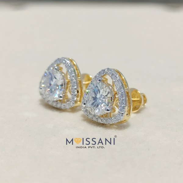 1.38ct+ 1.38ct Moissanite Round Shape With Halo Moissanite Earring with Gross weight 3.584 grams White Gold, D Color, VVS1 Clarity, Certified Anniversary Earring, Centre Nine Claw Prong, Earring Design / Anniversary Gifts / Gold Earrings / Moissanite White Gold