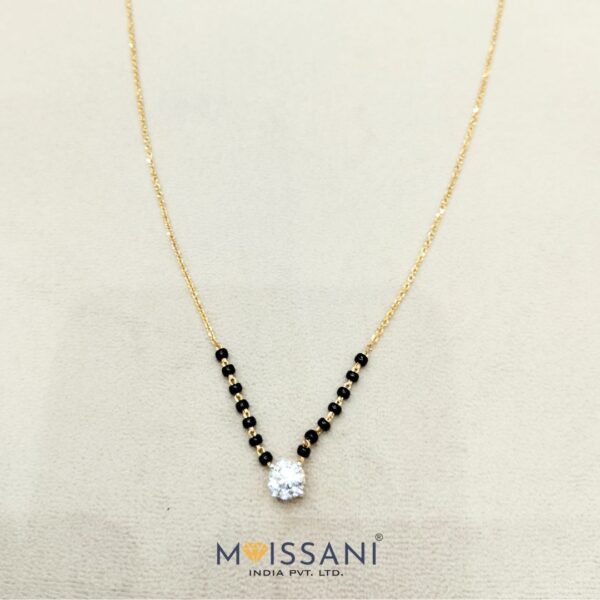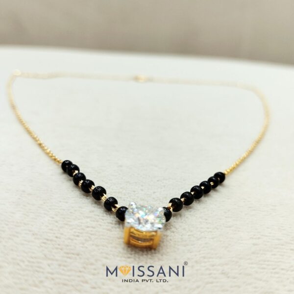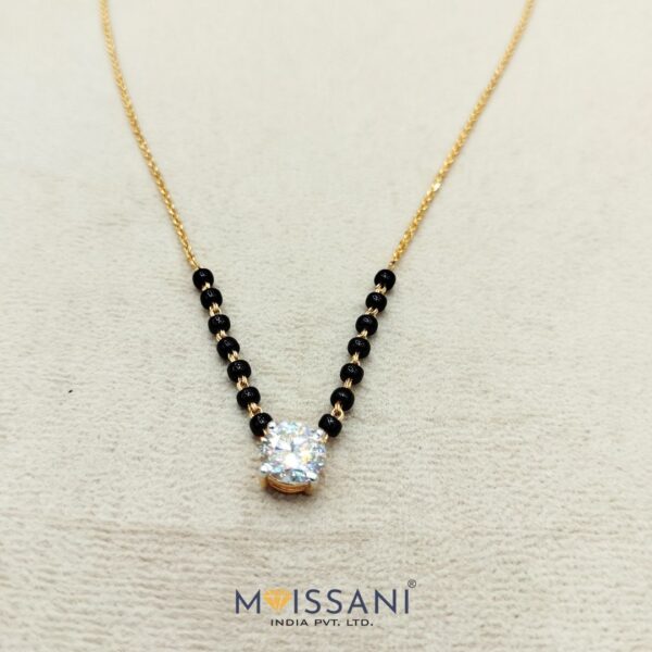1.15CT Round Shape Moissanite Mangal-sutra with Gross weight 2.962 grams in Yellow Gold Black beads 0.21GM, D Color, VVS1 Clarity, Certified Moissanite Mangal-sutra for Everyday Wear / Round Cut Mangal-sutra / Anniversary Mangal-sutra / Made to Order for Her / Best Forever Gift / Wedding Gift.