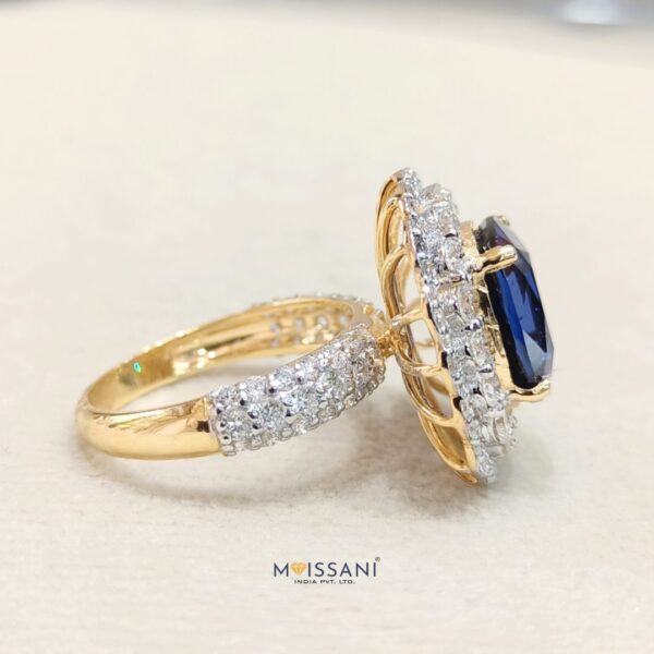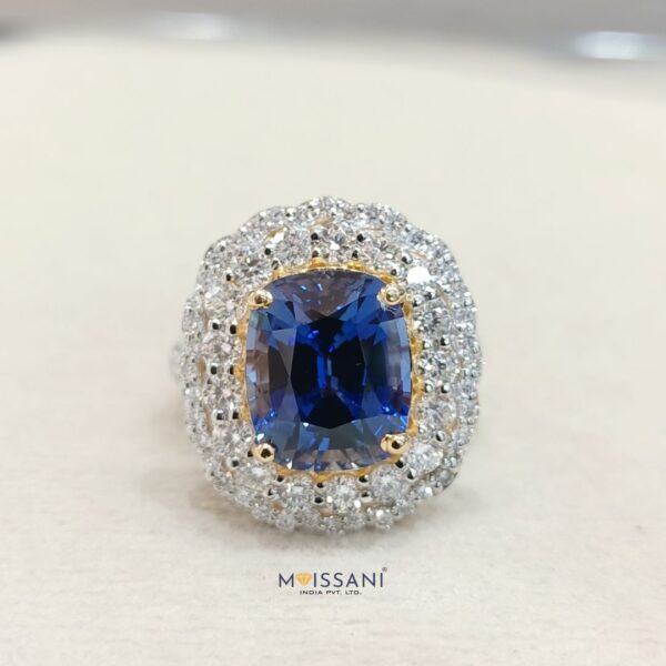 6.20ct Semi Precious Blue Sapphire Cushion Shape Solitaire With 1.97ct Side Stone Lab Grown Diamond (EF Color, VS Clarity)Gross Weight with 6.860gms in Gold, Certified Lab Grown Diamond for Everyday Wear / Cushion Cut Wedding Gift Ring / Wedding Ring Anniversary Ring / Made to Order / Best Forever Gift / Wedding Gift Ring
